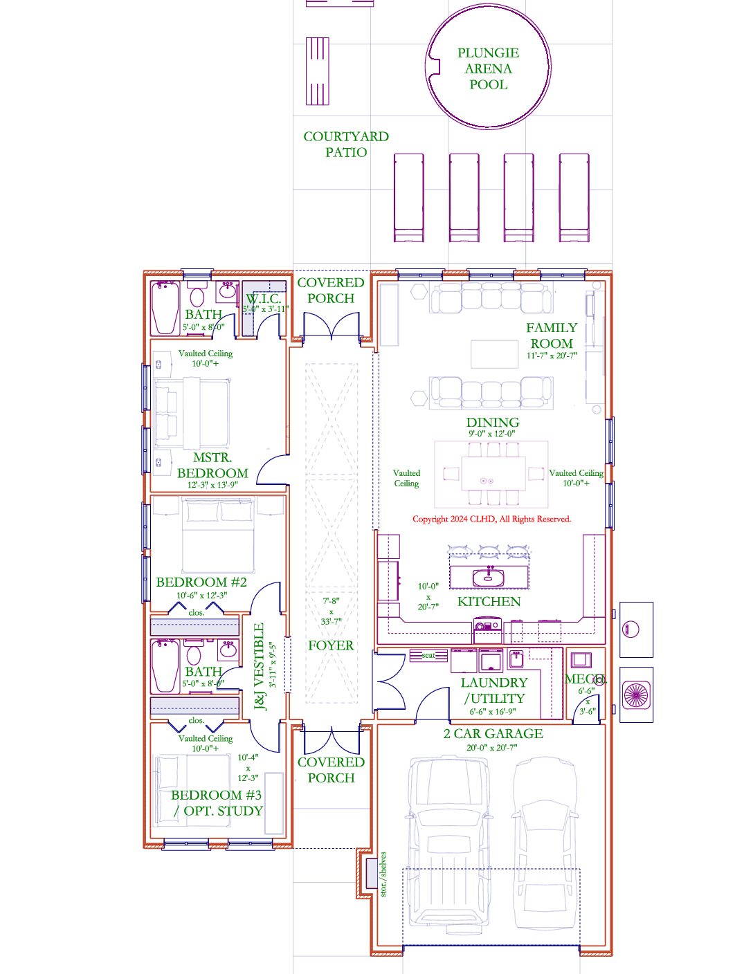 • Total Living Square Footage: Living Area: 1,854 Sq. Ft., Garage: 465 Sq. Ft., Porches: 124 Sq. Ft., Total Under Roof: 2,443 Sq. Ft.